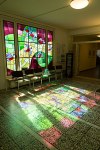 Katonspital Aarau, Tauben und Auferstehung, Farbfenster, 1957 und 1996 September 23, 2015Februar 29, 2016Helbling Haus 25, 1. OG „Tauben“ | 1957 Glasgemälde | Bleiverglasung ohne Schwarzlotzeichnung Haus 26, Raum der Stille „Auferstehung“ | 1996 Glasfenster Fotos: Dani Hunziker