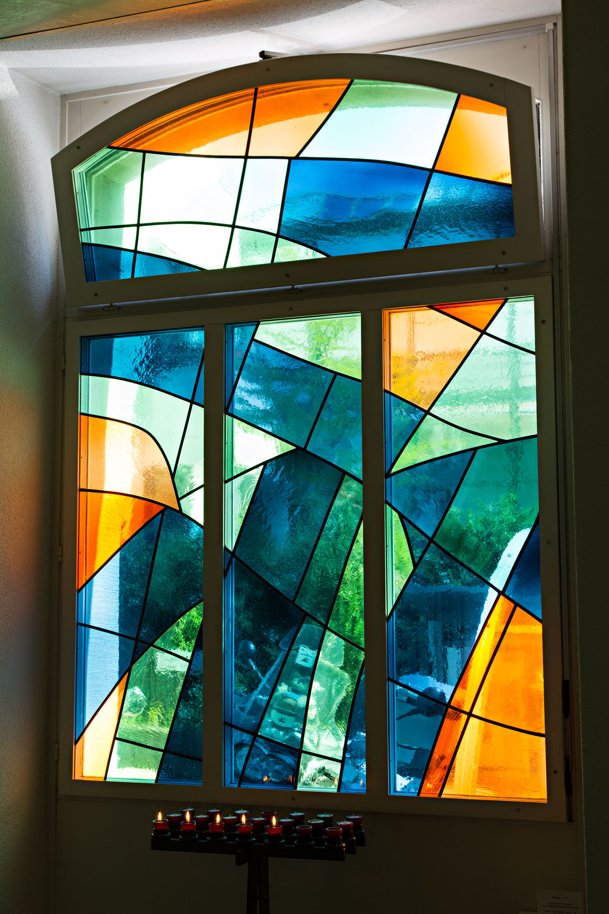 Katonspital Aarau, Tauben und Auferstehung, Farbfenster, 1957 und 1996